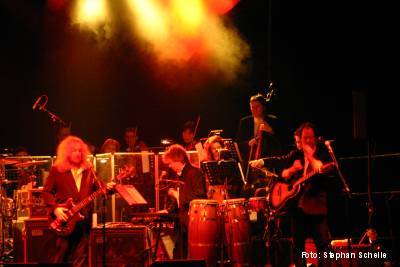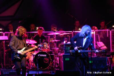 Neben weiteren nicht so bekannten Songs spielten sie aber auch bekanntere Titel wie „Rock 'n’ Roll Star“, „Mocking Bird“, „Berlin“ und „Ring Of Changes“. Das die Zuschauer die älteren Stücke bevorzugten, war klar an den Reaktionen zu spüren. Der Einsatz der Symphoniker tat den einzelnen Stücken richtig gut, denn sie verliehen ihnen ein noch größeres Volumen, was die Songs noch mal um einiges voller klingen ließ. Mit „Life Is For Living“ war dann der offizielle Teil beendet. Der Zugabenteil begann dann mit ihrem bekanntesten Stück, nämlich „Hymn“. Und bei diesem Titel hielt es die Leute dann, in der komplett bestuhlten Halle, auch nicht mehr auf ihren Sitzen. Mit Standing Ovations wurden die Helden der Vergangenheit gefeiert. Dann folgten noch „Love On The Line“ und „Shadows On The Sky“.