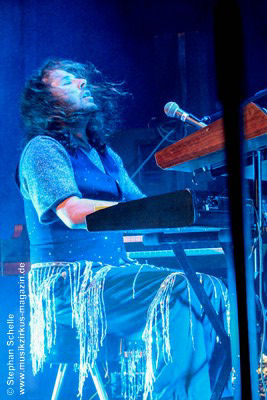 seine extrovertierte Spielweise, die ihn auch mit einem tragbaren Keyboard