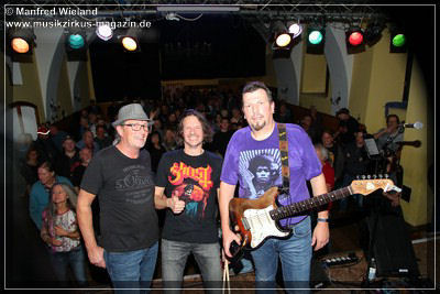 Weiter ging es dann mit „Empty Glass Of Beer“, einer weiteren Nummer aus dem aktuellen Album mit. Bei „I Am Tore Down“ stockte selbst mir der Atem. Die Nummer ist übrigens von Freddie King. Wusste bis Dato ja gar nicht was für Töne man aus einer Fender rausholen kann. Nun brodelt das altehrwürdige Sudhaus: „Slow Blues in C“ von Ten Years After war an der Reihe. Kann man die Stimmung noch toppen? Der Saal war übrigens proppenvoll. Ja Blues Control schaffte das und zwar mit „Voodoo Child (Slight Return)“ vom Altmeister Jimi Hendrix. Man nehme einen Joe Bonamassa und einen Jimi Hendrix, rührt das Ganze zusammen und bekommt einen Meidinger. Was der Christian aus der Stratocaster rausholt, kann man nicht beschreiben! Das muss man selbst erleben.