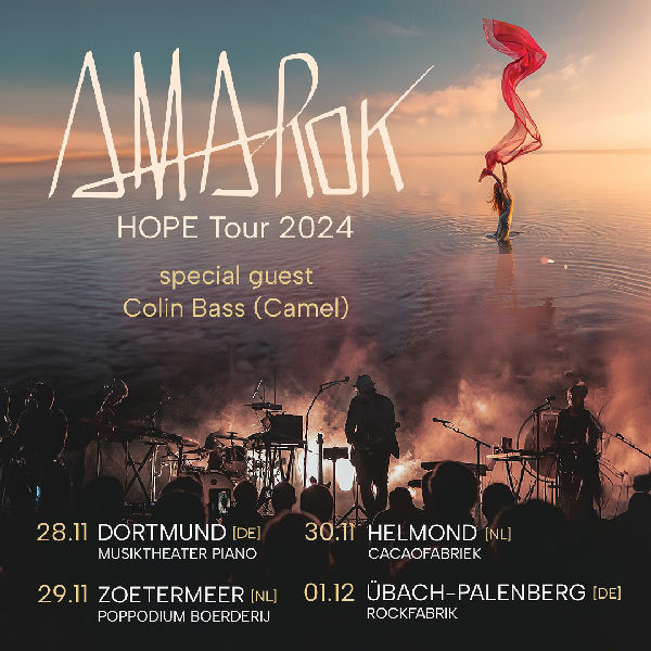 Am 26.11.2024 startete die polnische Band AMAROK eine vier Konzerte umfassende Tour durch Deutschland und die Niederlande. Der erste Auftritt fand im Musiktheater Piano in Dortmund statt, zuvor hatten sie aber auch schon einen Gig in Polen. In Dortmund hatten sie den britischen Gitarristen und Sänger Colin Bass dabei, der schon auf zwei ihrer Alben bei Stücken mitgewirkt hat und auf der Tour zwei Stücke mit ihnen gemeinsam sang. Er agierte auch als Supportact und bestritt die ersten 45 Minuten Solo. Die Konzertbesprechungen inkl. Fotos könnt ihr unter den folgenden Links einsehen: |