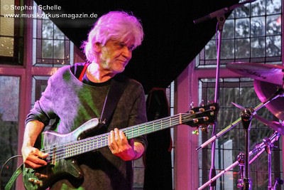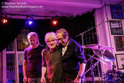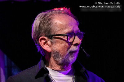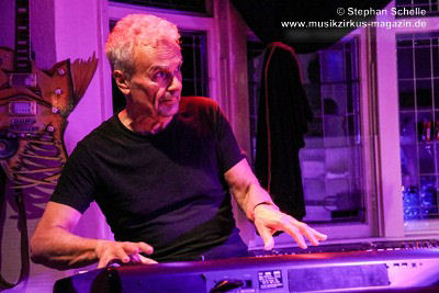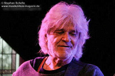 Nach einigen Geschichten holte Curt dann Wolfgang Schmid (Bass) und Chris Weller (Keyboard) auf die Bühne um mit den beiden zu improvisieren. Wie Curt sagte, ist jeder Abend anders, da die Stücke nie gleich sind. Hier zeigte sich aber welch Ausnahmekönner auf der Bühne standen. Sie agierten mit einem blinden Verständnis und boten eine sehr abwechslungsreiche Mischung aus Rock, Soul, Funk und Jazz, wobei auch mal ein The Police-artiger Rhythmus sich aus dem Sound schälte. Wolfgang Schmid spielte dabei nicht nur einen rhythmischen Bass, sondern übernahm zeitweise auch die Leadstimme bzw. die Harmonien. Während einer Improvisation zeigte Curt dann sein ganzes Können während eines längeren Schlagzeugsolos, in dem er nicht nur technisch anspruchsvoll agierte, sondern auch noch sehr harmonische Rhythmusmuster spielte. Er hat den Rhythmus im Blut.
