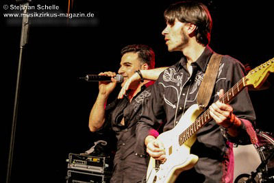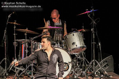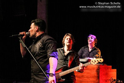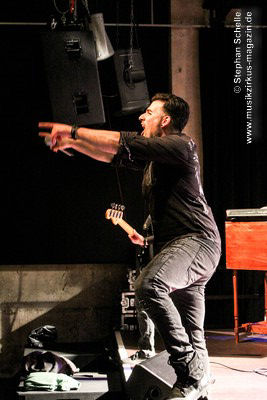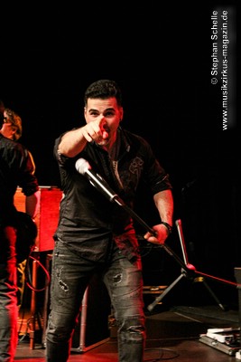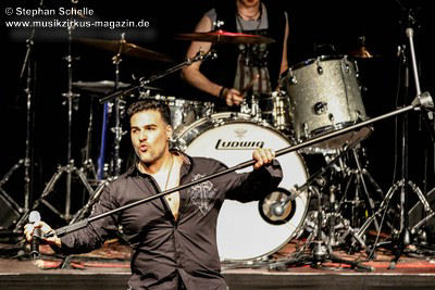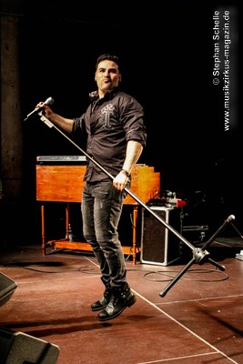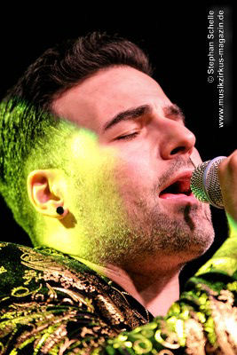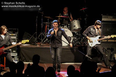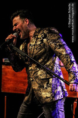 Die Songs, die Demon’s Eye für diese Tour ausgesucht hatte, stammten vorwiegend aus den 70’er Jahren, also aus der Blütezeit von Deep Purple. Zu einem Intro, das aus Johan Sebastian Bach’s „Toccata“ bestand, kam die Band pünktlich auf die Bühne und legte nahtlos gleich mit dem Song „Highway Star“ mächtig los, das der Putz von den Wänden abzubröckeln drohte. Sofort war die Stimmung im Publikum da, denn die Band wandelte traumwandlerisch und sicher durchs Programm. Schon bei diesem Opener war zu merken, dass Daniele die Songs wie Ian Gillan zu seinen besten Zeiten interpretieren kann. Darüber hinaus ist er auch eine richtige Rampensau, die das Publikum sofort zu begeistern weiß.