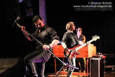 Die aus dem Siegener Raum stammende Band, bestehend aus Mark Zyk (Gitarre), Gert-Jan Naus (Orgel, Keyboards), Maik Keller (Bass) und Andree Schneider (Schlagzeug) hatten sich erst im Dezember 2016 mit dem Sänger Daniele Gelsomino verstärkt und absolvierten in Arnsberg ihren zehnten Gig dieser Tour. Daniele, der mir nach dem Konzert erzählte, dass er erst im Dezember 2016 zur Band gestoßen und sich seitdem die Songs drauf gebracht hat, ist ein Glücksfall für Demon’s Eye, denn sein Stimmumfang beinhaltet nicht nur den von Ian Gillan zu seinen besten Zeiten, sondern schafft es auch in den Tonlagen von David Coverdale und Glen Hughes live zu singen. Damit war er ganz nah dran an den Originalen.