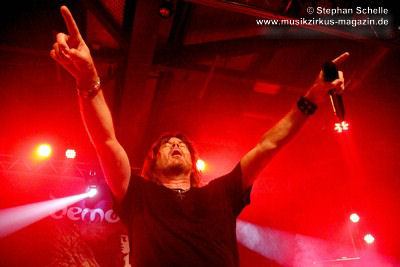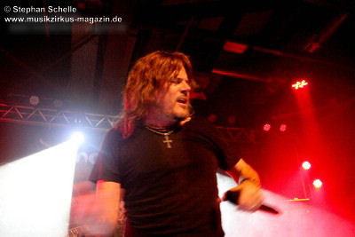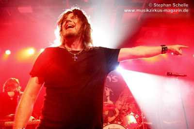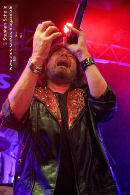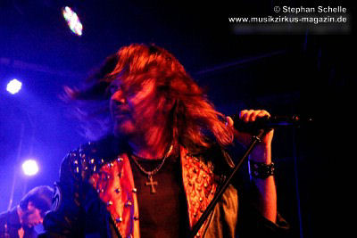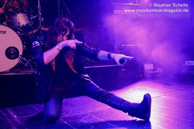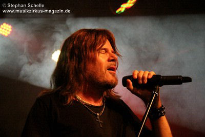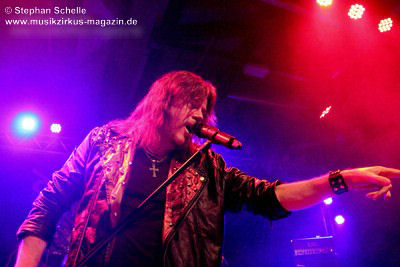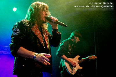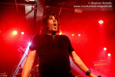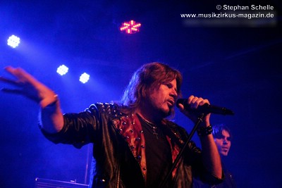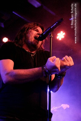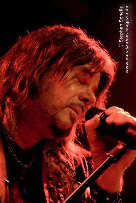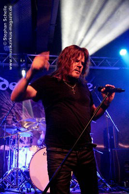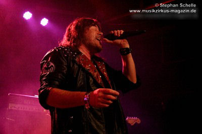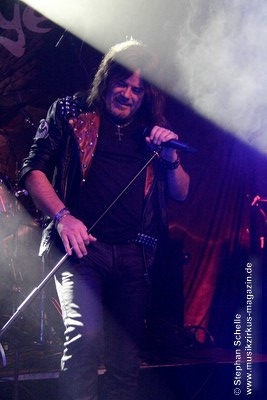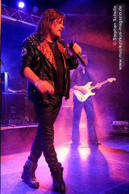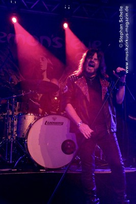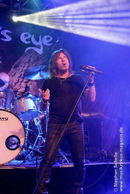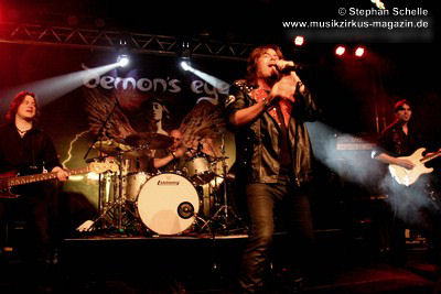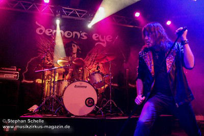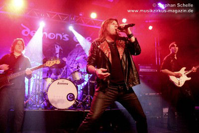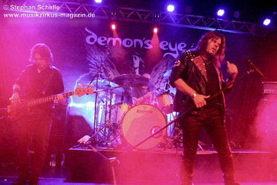 Sänger Doogie White (er hat das Rainbow Album „Stranger In Us All“ eingesungen), Gitarrist Mark Zyk, Bassist Maik Keller, Schlagzeuger Andree Schneider und der neue Keyboarder Gert-Jan Naus betraten zu dem Intro „Epic“ vom neuen Album die Bühne und legten mit der Eigenkomposition „Road To Glory“ mächtig los. Schnell wurde klar, dass Demon’s Eye mit dem Schotten Doogie White den perfekten Sänger und Frontmann haben. Neben diesem Stück streuten sie noch vier weitere Songs vom neuen Album, sowie mit „Far Over The Rainbow“ einen Song ihres Debütalbums in das Set ein.