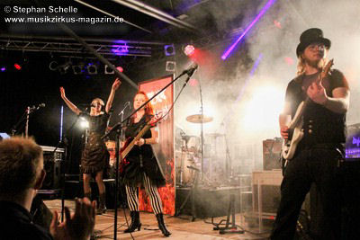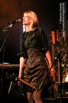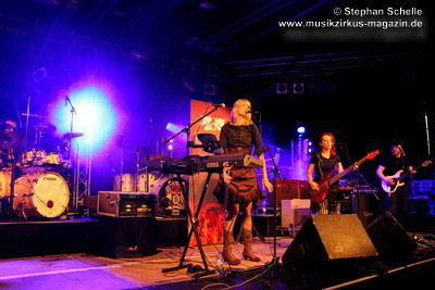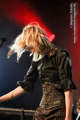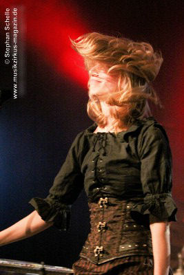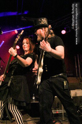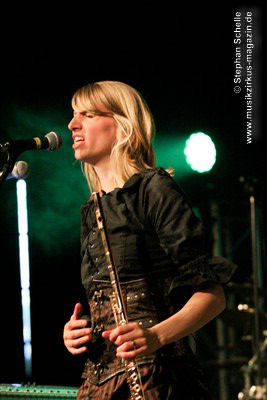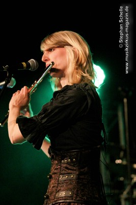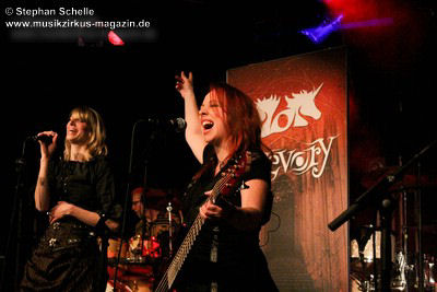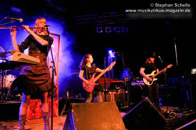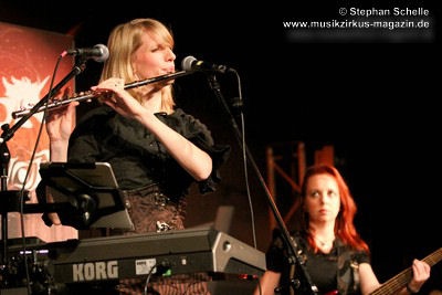 Den Abschluss des Konzertes bildete das seit 2013 fest zum Liveprogramm gehörende „Requiem Aeternam“. Dieser Song beinhaltet alles, was für die Musik von Eyevory steht. Symphonische Elemente, die das Stück eröffnen, herrliche Melodien auf der Querflöte, knackige Rhythmen und Gesangsparts in denen sich Kaja und Jana die Bälle zuspielen. Traumhafte Melodiepassagen wechselten sich mit rockigen Parts ab. Ein beeindruckendes Ende eines sehr guten Konzertes der sympathischen Bremer Band. Wie ich bei ihrem letztjährigen Konzert geschrieben habe, hoffe ich, dass sie von einer breiteren Masse entdeckt werden, denn sie haben es wahrlich verdient.