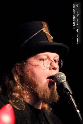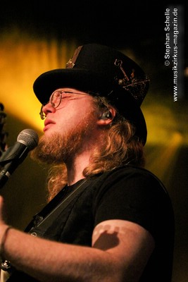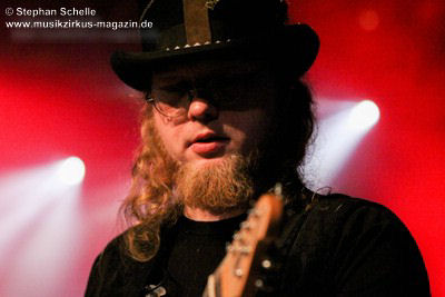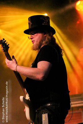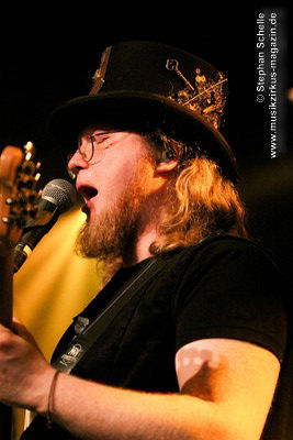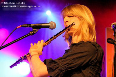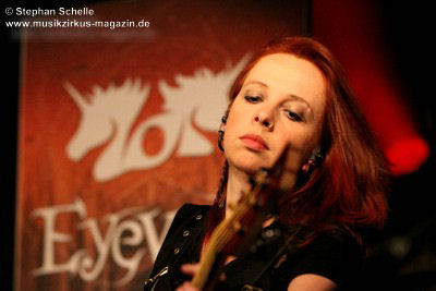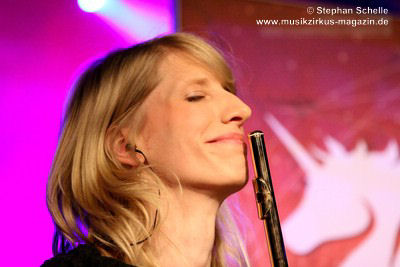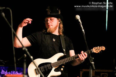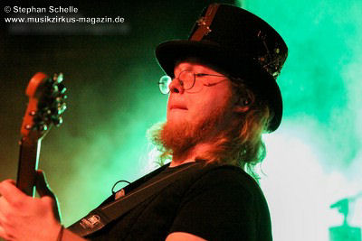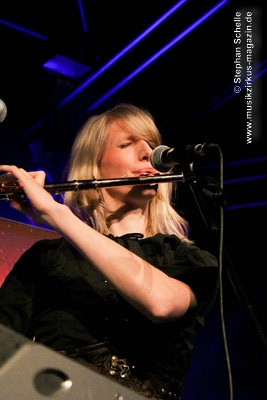 Die Stammbesetzung von Eyevory besteht aus Jana Frank (Bass, Gesang), Kaja Fischer (Querflöte, Gesang, Keyboards) und David Merz (Gitarre). In Hamm hatten sie ihren neuen Schlagzeuger Arne Suter mit dabei. Wie mir Jana am Ende des Konzertes verriet, hoffen sie, dass sie mit Arne nun einen festen Drummer in der Band haben. Und das er ein wirklich guter ist, das bewies der studierte Schlagzeuger, der unter anderem im Jazz- und Big Band-Bereich tätig war, bei dem Konzert eindrucksvoll. Er unterstütze die Band mit seiner Rhythmusarbeit perfekt.