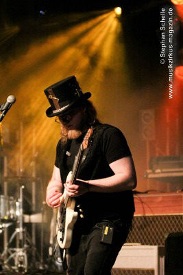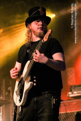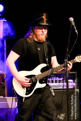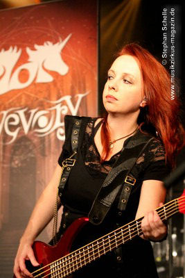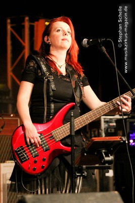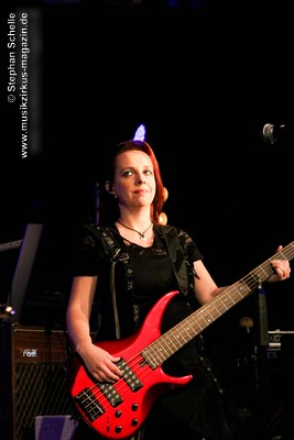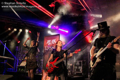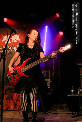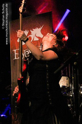 Auf dem Programm von Eyevory standen einige älter Stücke sowie drei neue Songs vom bald erscheinenden zweiten Longplayer „Inphantasia“. Von technischen Probleme, die kurz vor ihrem Auftritt für einen Austausch des Keyboards sorgten, ließen sich die Vier aber nicht irritierten und starteten nach einem Intro mit ihrem Stück „Sacrifice“ eindrucksvoll in ihren gut 45minütigen Gig. Und „Sacrifice“ vom „Euphobia“-Album ist ein richtiger Knaller und wurde in einer druckvollen Version dargeboten. Damit hatten sie das Publikum schon von Beginn an in ihrer Hand.