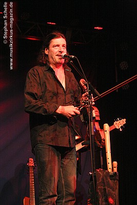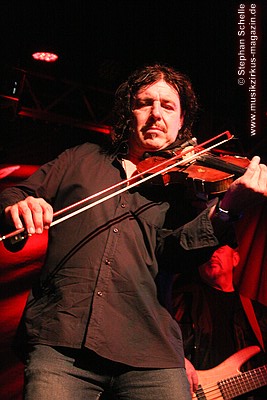 Nach dieser aufwühlenden Nummer war dann mit „Unter dem Flüsterbogen“ eine Ruhepause angesagt. Bei diesem balladesken Stück verließ Mani die Bühne und mischte sich Geige spielend unter das Publikum. Das gab dem Ganzen eine besondere Note. Beim abschließenden „Finale“ zogen sie dann noch mal alle Register und Ulli und Joschi lieferten sich in einem wahren Feuerwerk ein Duell an ihren Saiteninstrumenten. Dabei mischten sie mal eben eine kurze Passage des Manfred Mann-Klassiker’s „Davy’s On The Road Again“ in den Titel. Nach gut zwei Stunden war der offizielle Teil des Konzertes beendet.