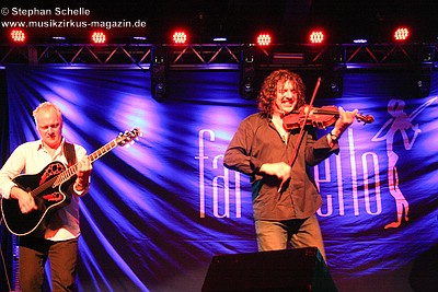 farfarello ist eine Band, die über das Jahr verteilt eine hohe Anzahl an Konzerten in unterschiedlichen Besetzungen spielt. Im Februar 2011 hatte ich das Vergnügen sie erstmals live zu erleben, seinerzeit als Trio bestehend aus Mani Neumann (Geige, Flöten), Ulli Brand (Akustikgitarre) und Nippy Noya (Perkussion). Am 30.09.2011 gaben farfarello - nach sechsjähriger Pause - wieder ein Gastspiel im nordrhein-westfälischen Soest. Zu ihrem Auftritt im Alten Schlachthof kamen zahlreiche Besucher, die den Auftritt sichtlich genossen.