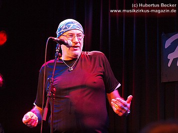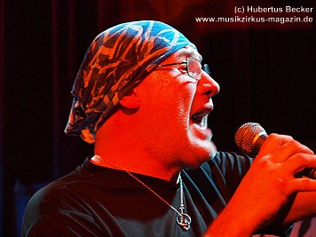 Der Auftritt beginnt fast pünktlich um 20 Uhr, Fish betritt unter dem freundlichen Applaus der mittlerweile sicher 400 Besucher seine Welt und legt sofort los. Ohne Band, dafür mit „Chocolate Frogs“ vom Konzeptalbum „Raingods With Zippos“ eröffnet einen denkwürdigen Abend. Mit einem schelmischen Grinsen bedankt er sich nach dem Song bei Foss Petterson und Frank Usher für die Begleitung, die danach schließlich auch die Bühne betreten. Die drei „F’s“ sind komplett und Fish scheint nicht nur gute Laune zu haben, er ist richtig gut drauf.