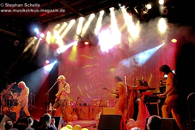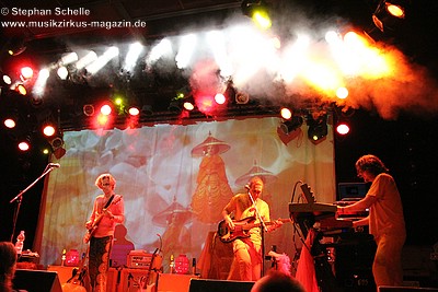 und kraftvoller geworden ist. Die Band hatte an der Bühnenrückseite eine