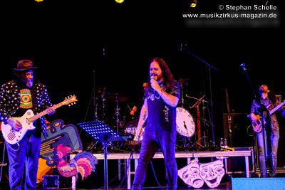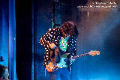 aber egal, denn jetzt ließ er seine Haare fliegen und riss bei den Soli