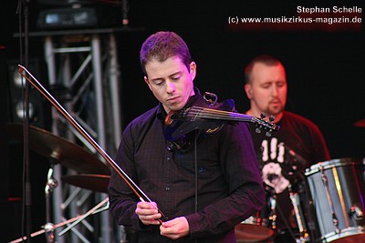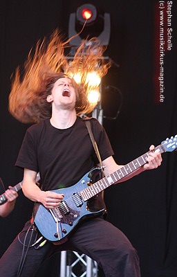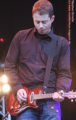 Gastgitarrist Michael Krumins lässt hier in Metal-Manier die Haare fliegen