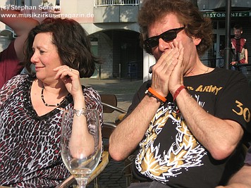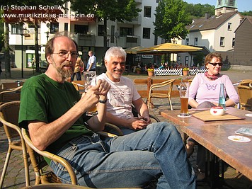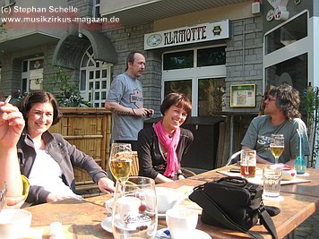 Die Saat der guten Laune war schon Tage vor dem Konzert im Grobschnitt-Forum ausgestreut worden und die zarten Knospen, in Form der Vorfreude, die am Samstag auf der Fahrt nach Hagen-Hohenlimburg schon in so manchem Gefährt (Bahn, Wohnmobil, Auto oder Motorrad) noch unter der Erdoberfläche ihr Dasein fristen musste, wurde durch das schöne sonnige Wetter beim Vorglühen im Außenbereich der „Klamotte“, einer Gaststätte in Hagen-Hohenlimburg, bei Speisen und Getränken schon einmal gedüngt. Schon dieses Treffen der Forumsmitglieder, bei dem mehr als 20 frohgelaunte Grobschnitt-Fans teilnahmen (zum Teil mit Anfahrten aus Bremen, Berlin, Nürnberg und Augsburg), geriet zu einem fröhlichen Happening.