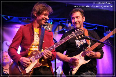 beiden Mitspieler, ein wahrer Virtuose, er an seinen 6-Saitern. Er spielt