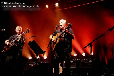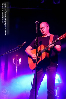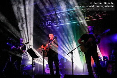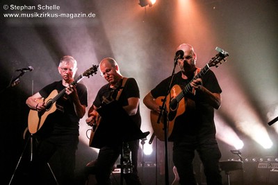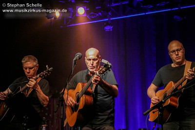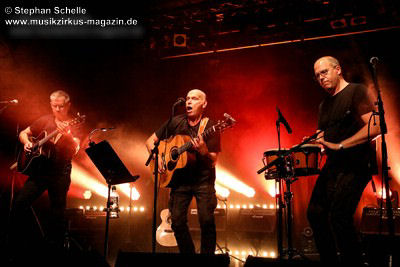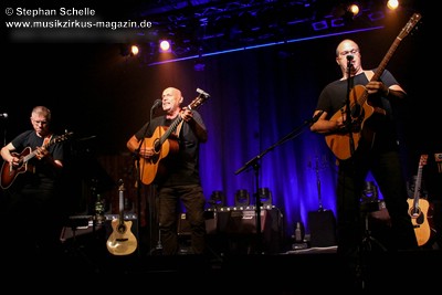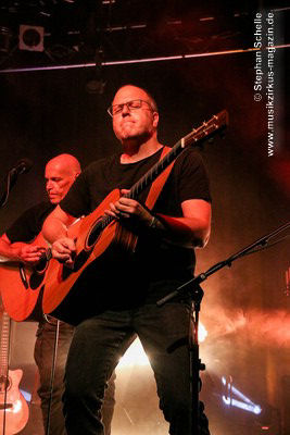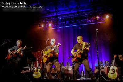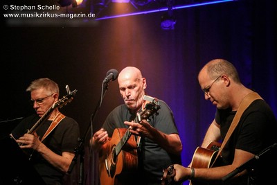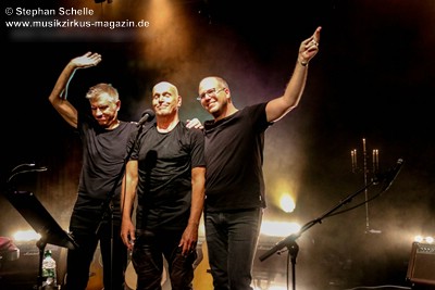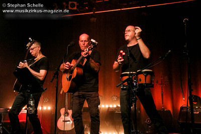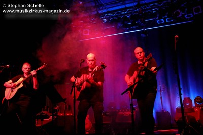 Alle Dekaden der Band sollten dabei bedacht werden, bei denen die drei Protagonisten die Stücke nur mit ihren Westerngitarren spielen sollten. Wer die Shows und den voluminösen, druckvollen Sound ihrer Stücke kennt, war zunächst skeptisch, ob diese überhaupt in Akustikversionen umsetzbar sind. Vor allem Stücke wie „Rockpommel’s Land“ und „Solar Music“, die zum Tafelsilber der Band zählen, schienen in dieser Form zunächst unspielbar. Aber ein Video auf der Bandseite zeigte schon mal eine kurze Kostprobe mit Ausschnitten einiger Songs, die Appetit auf mehr machten. Und so ist es kein Wunder dass die beiden Termine in der mit ca. 140 Sitzplätzen ausgestatteten Katakombe des Werkhofes schnell ausverkauft waren.