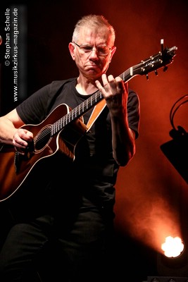 Es war eine Augenweise Lupo zuzuschauen wie seine Hände förmlich über die Saiten seiner Gitarre flogen. Mal flink, dann wieder sehr filigran. Dazu verstand er es wie ein Entertainer Geschichten aus der Zeit zwischen 1970 und 1989 in humorvoller Art und Weise zum Besten zu geben.