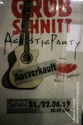 Als dann das letzte Konzert in der Essener Grugahalle gespielt war und diese Formation auseinanderging, schienen die Livepartys mit Originalmitgliedern Geschichte zu sein. Im Frühjahr 2019 platzte dann aber eine erneute Bombe, denn Gerd Otto Kühn (Lupo), Stefan Danielak (Willi Wildschwein) und Stefan Danielak jun. (Nuki) gaben bekannt, dass es eine Grobschnitt Acoustic Party geben würde. Natürlich wieder mit Eröffnungsgigs im Werkhof in Hagen-Hohenlimburg.