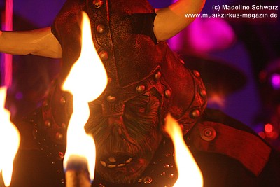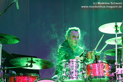 Obwohl das Konzert schon fast die Drei-Stunden-Grenze kratzt, zeigen weder Musiker noch das Publikum Ermüdungserscheinungen jeglicher Art - es liegt in der Luft: diese Momente sind viel zu kostbar, um sie einfach loszulassen, sie verpuffen zu lassen. Und nicht nur musikalisch wird dieses Verlangen nach Ewigkeit beschworen: da kämpfen Gut und Böse mit Laserschwertern auf der Bühne, der Sonnengott in Persona betritt die Szenerie und die Macht des Feuers wird buchstäblich zelebriert. Und dennoch erreicht auch dieses brachiale Wunderwerk, das von den seligen Krauttagen des Rock bis in die Neuzeit nichts von seiner Faszination verloren hat, den Punkt, an dem der letzte Akkord erklingt - und dennoch ist nicht alles aus: in die positiv aufgeladene Atemlosigkeit nach einer Stunde musikalischen Dauer-Rausches gibt die Gruppe sich und ihren Fans die Ehre mit einem wie immer sehr persönlich gestalteten, bewegenden Zugabenteil.