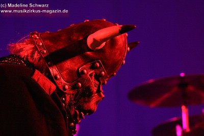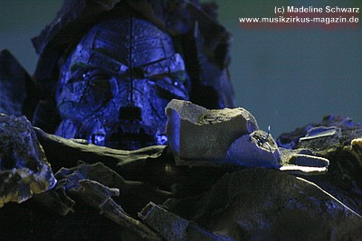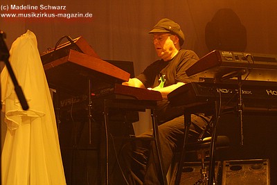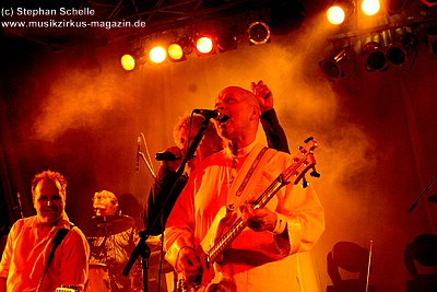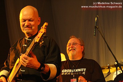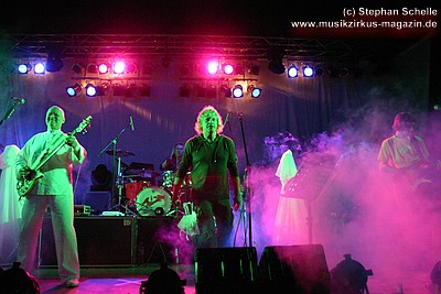 Die Konfetti-Krise blieb aber die einzige augenfällige Panne bei diesem Konzert, das dem Bandjubiläum würdig ein Denkmal setzte. Man merkte der Band an, dass ihr gerade dieser Gig eine Herzensangelegenheit war. Dies nimmt auch nicht wunder: der vor einigen Jahren unerwartet verstorbene Keyboarder Volker „Myst“ Kahrs, der der Gruppe in den 70er Jahren wichtige Impulse gab und für die Story des beliebten Rockmärchens und weite Teile der Kompositionen verantwortlich zeichnete, stammte aus Osterholz. Mit bewegten Worten erinnerte Sänger Willi Wildschwein an den alten Weggefährten und daran, dass dieser wohl die Landschaft dieser Gegend vor Augen hatte, als er die Geschichte von Klein Ernies Reise nach „Rockpommel’s Land“ ersann. Somit ging das Konzeptwerk bei diesem Auftritt der Gruppe zurück an seine Wurzeln, was allein schon für eine gewisse Magie sorgte, die im Saal greifbar schien.