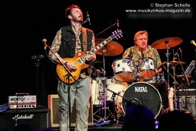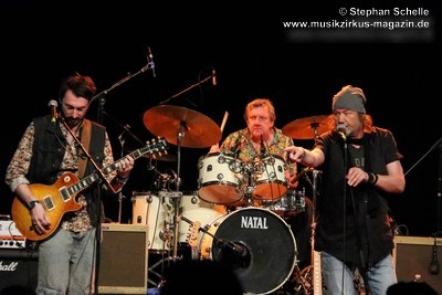 bei ihren Auftritten brettharten Gitarren-Bluesrock spielfreudig wie