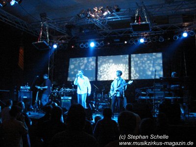 Zum Abschluss wurde es dann auch noch einmal recht lustig. Auf den Projektionsleinwänden wurden die einzelnen Musiker mit lustigen Pseudonymen vorgestellt, dazu lief eine deutsche Orchestermusik, die sehr bekannt ist (mir fällt dazu nur das Schwarzwaldmädel ein - wenn ich euch das jetzt vorsummen könnte, wüsstet ihr sofort Bescheid). Danach wurden auch noch die Roadies vorgestellt und einige Utensilien gezeigt, die angeblich am Merchandisingstand verkauft wurden (z. B. einen IQ-BH, IQ-Eierbecher, IQ-Unterhose), was natürlich völliger Quatsch war. Die Kombination aus den lustigen Bildern und der Musik zeugt von dem Humor, den die IQ-Musiker Humor besitzen und dass sie über sich selbst lachen können. Ich finde die fünf Engländer sind eine absolut sympathische Truppe, die eine perfekte Show und Musik bietet. Sollten sie wieder in meiner Nähe spielen, werde ich sie auf jeden Fall wieder besuchen. Stephan Schelle, 15.09.2003 |