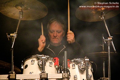 sein unvergleichliches Drumsolo ein, bei dem er wieder seine Schlagstücke