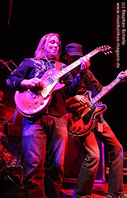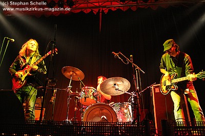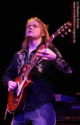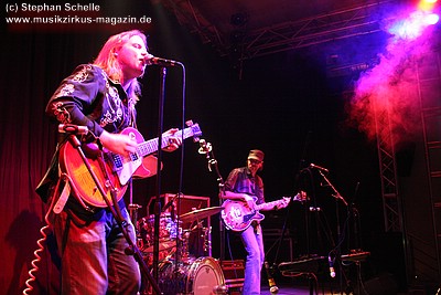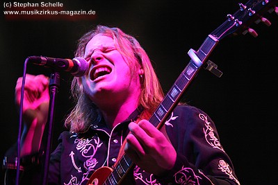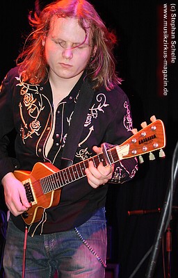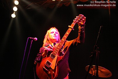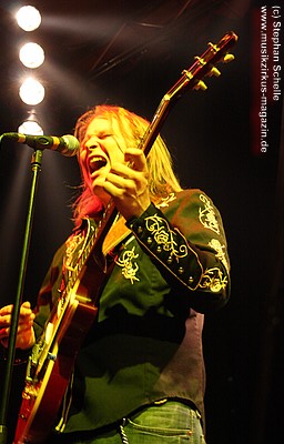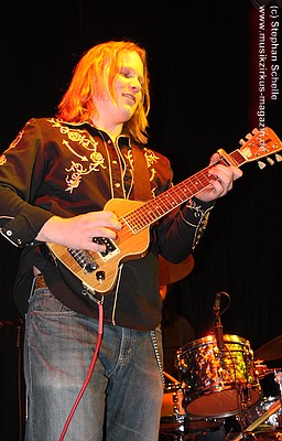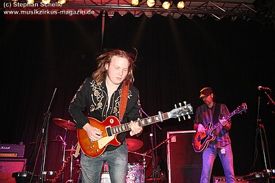 Die Eigenkompositionen seines Albums „Diamond Ring“, „Far From Reality“, „Rattle Snake Shake“, „The Kara-Dag“ und „Loser“ überzeugten dabei auf ganzer Länge. Zwischendurch hatte ich den Eindruck als wachsen Stilelemente von Rory Gallagher, ZZ Top, Stevie Ray Vaughan und anderen Rockgrößen mit dem unglaublich jugendlichen aber doch sehr druckvollen Flair des Jimmy Bowskill zusammen. Jimmy agierte während der Songs fast ekstatisch und ging förmlich in seinen eigenen Nummern auf. Damit brachte er die Besucher schnell auf seine Seite.