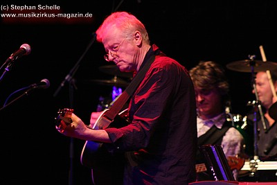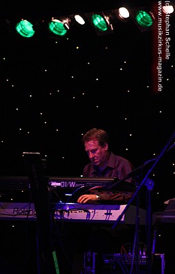 John und „Wolly“ sind zwar nicht die großen Performer, während sie ihre Stücke präsentieren (vor allem John spielte oft bedächtig mit gesenktem Kopf), aber die beiden und ihre Mitmusiker machten dies durch die herrlichen symphonischen, ruhigen und getragenen Stücke, die sie in einer äußerst gelassenen und unaufgeregten Art präsentierten, wieder wett. Darüber hinaus gingen sie sehr humorvoll miteinander um und hatten so manch lockeren Spruch auf den Lippen, bei dem sie sich auch selber nicht so ernst nahmen. So musste „Wolly“ beispielsweise des Öfteren auf die Setlist schauen und wurde mit einem Kommentar bedacht: „Da steht doch eh nur deine Einkaufliste drauf, bestehend aus Milch, Butter…“. Diese lockere Art sorgte für eine total entspannte und angenehme Atmosphäre unter den Zuschauern.