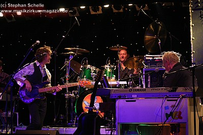 Neben John (Gesang, Gitarre, Flöte) und „Wolly“ (Keyboards, Mellotron, Perkussion, Akustikgitarre, Gesang) gehören zur Formation Craig Fletcher (Bass), Key Whitehead (Schlagzeug) und Jez Smith (Keyboards). Man mag es mir verzeihen, aber das erste was mir einfiel, als ich John und „Wolly“ auf der Bühne sah, war: „Da sind zwei liebenswerte Großväter und britische Gentleman auf der Bühne, die so gar nicht in die Rockszene passen“. Sie machen so gar nicht den Eindruck von Rockmusikern, was aber nur äußerlich Wirkung zeigte. Es bewahrheitete sich mal wieder, dass solche vordergründigen Dinge zu Vorurteilen führen, die nicht der Wahrheit entsprechen.