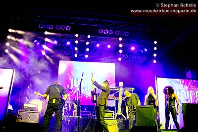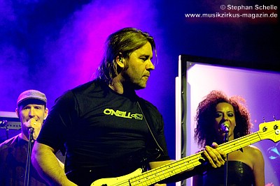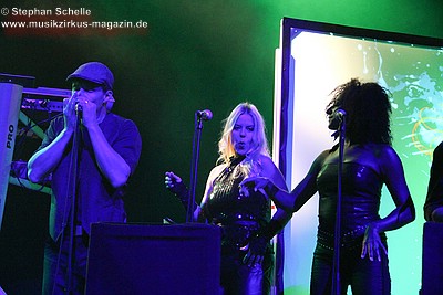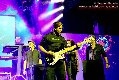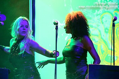 Backgroundsängern (zwei weibliche und zwei männliche) sehr voluminös.