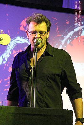 Musiker auf der Bühne. Der Gitarrist und Sänger Kevin Taylor begann mit den