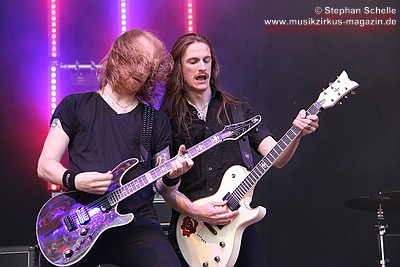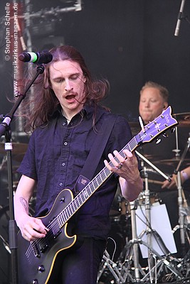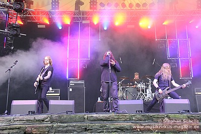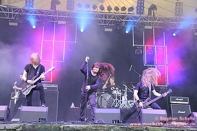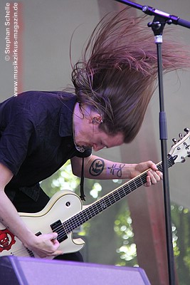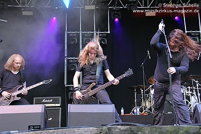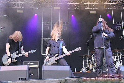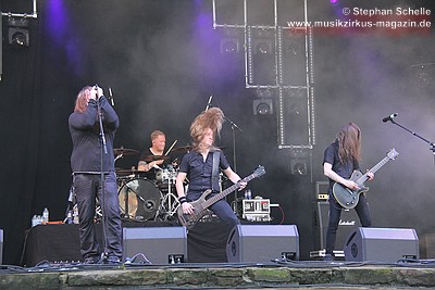 Bandmitglieder häufig beim Headbangen, so dass sie aus dem bisherigen LineUp