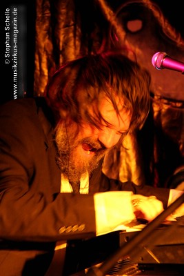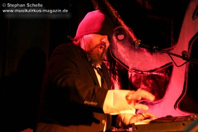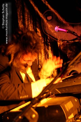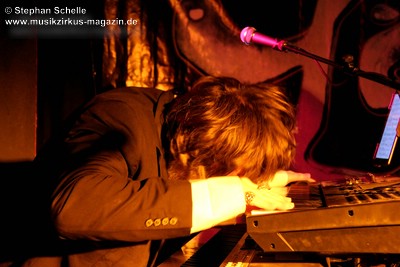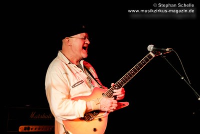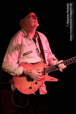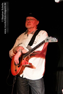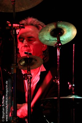 Mit „Die Just A Little“ und „Stone Crazy“ folgten dann zwei weitere Stücke vom aktuellen Album. Danach ging die Band weit zurück in ihre Vergangenheit und spielte mit „Red Lake“ einen Song vom 78’er Album „II“. Ein klasse Song. Während Schlagzeuger Stickdorn seine Rhythmusparts souverän und unaufgeregt spielte und Bassist Trull ebenfalls sehr ruhig, aber doch intensiv seine Parts rüberbrachte, waren es vor allem Alex Conti an der Gitarre und Jens Skwirblies an den Keyboards, die für tolle Soli sorgten. Vor allem Skwirblies zeigte bei diesem Song schon mit welcher Intensität und welchem Enthusiasmus er bei der Sache war. Er hatte zu Beginn des Konzertes eine Strickmütze auf dem Kopf, die ihm bei seinem Solo über die Augen rutschte, so dass er kaum noch etwas sah. Das beeinträchtigte ihn aber keineswegs, sein mitreißendes Solo zu Ende zu bringen.