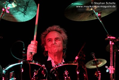 Dann folgte mit „On The Run“ der erfolgreichste und beliebteste Song der Band. Das zeigte sich dann auch in den Zuschauerreaktionen, denn sofort war die Stimmung da. Und Alex & Co. boten eine wirklich tolle, mitreißende Version dieses Stückes vom 76’er Debütalbum. Keyboarder Skwirblies setzte dann auch noch mal einen drauf. Er hatte sich mittlerweile seiner Wollmütze entledigt und wirbelt an seinen Keyboards, sodass schnell der Vergleich zum Tier aus der Muppet Show auf der Hand lag. Er mag mir den Vergleich verzeihen, aber so energetisch wie er da seine Tasten bearbeitete, war das wirklich phänomenal.