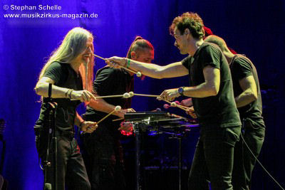 nennt. Dazu treten die fünf Musiker an die Marimba und spielen (bis auf