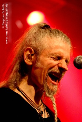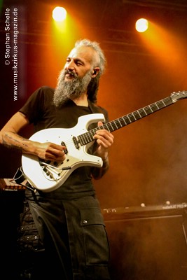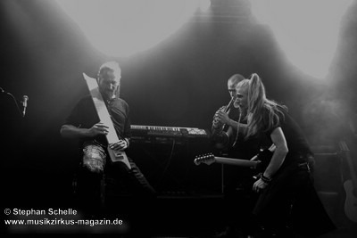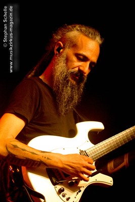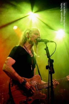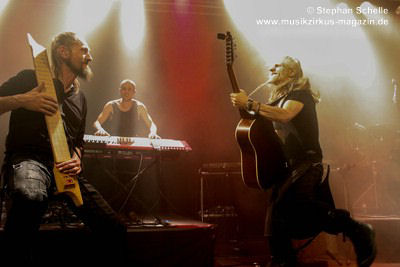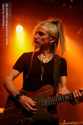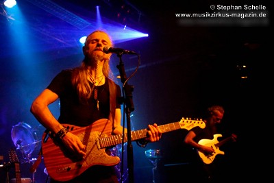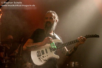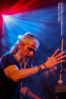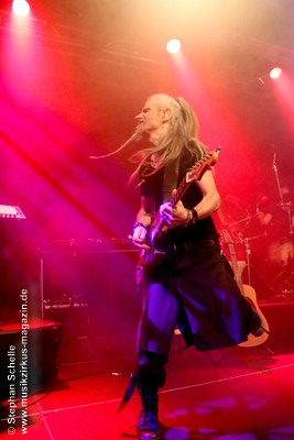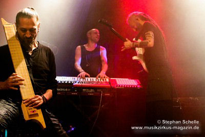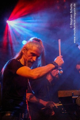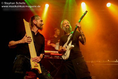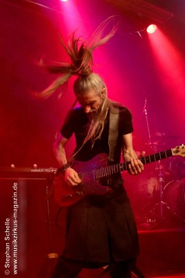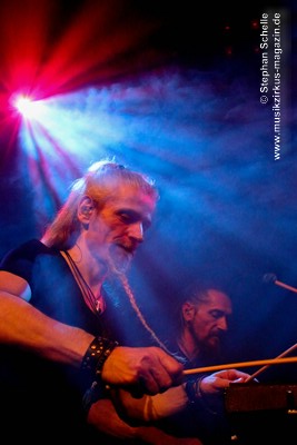 Erst auf der Bühne explodieren die Jungs so richtig und holen aus ihren Songs noch mehr Dynamik und Esprit heraus. Sie sind mittlerweile, aufgrund des seit Jahren kontinuierlichen LineUps fest zusammengewachsen und bilden eine kompakte Einheit. Daneben machte sich in Oberhausen deutlich, dass sie aufgrund der schon absolvierten Shows perfekt eingespielt waren. Ich habe die Band schon mehrfach live erlebt, aber was sie am 22.04. da auf die Bühne brachten, das setzte dem Fass die Krone auf. Nie habe ich sie besser gesehen, wie an diesem Abend.