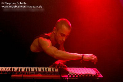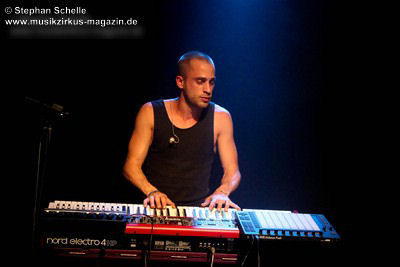 Die erste Zugabe „Nos Ames Saoules“ begann mit einem ausufernden Intro, das aus einem Solo von Romain am Keyboards bestand, bei dem er von Vincent am Schlagzeug druckvoll unterstützt wurde. Minutenlang gingen die beiden unter rhythmischem Klatschen der Zuschauer ans Werk. Ein unglaubliches Solo. Cederic mischte sich derweil unter die Leute während Romain und Vincent ihr Solo spielten.