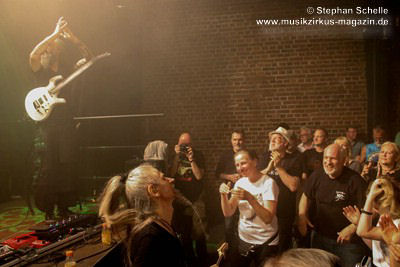 Die Jungs waren so Energie geladen wie ich es noch nicht von ihnen erlebt habe und das übertrug sich auf’s Publikum und schwappte wieder zurück. Sie begannen mit dem Opener ihres aktuellen Albums „Saison 8“, deren Stücke sie komplett ins Livesetup genommen hatten. Die neuen Stücke zündeten dabei auf Anhieb und fügten sich perfekt mit älteren Stücken zu einem ausgewogenen Set.
