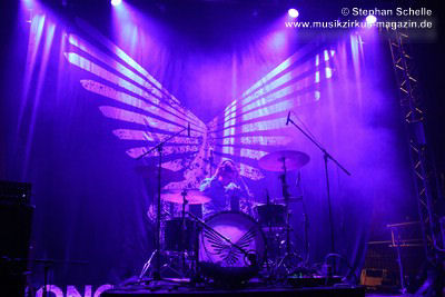 sondern auch zur Hälfte des Konzertes das im Hintergrund aufgehängte große