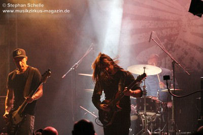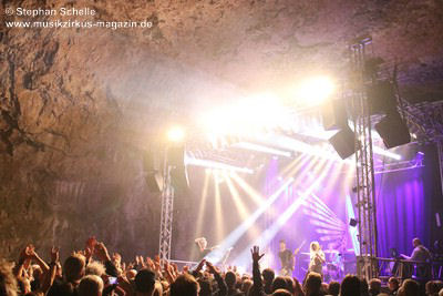 Hauptbühne. Sofort zogen sie eine Meterhohe Wall Of Sound hoch, die die Höhle