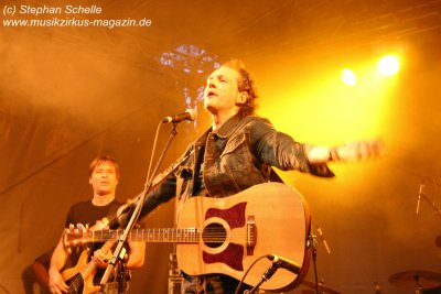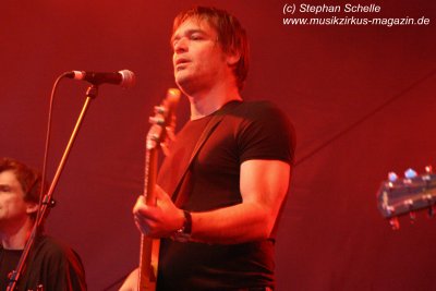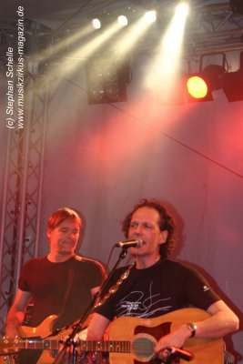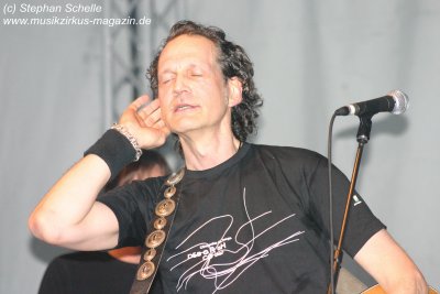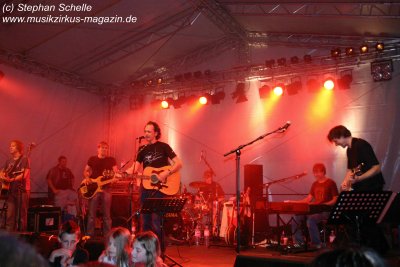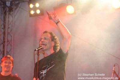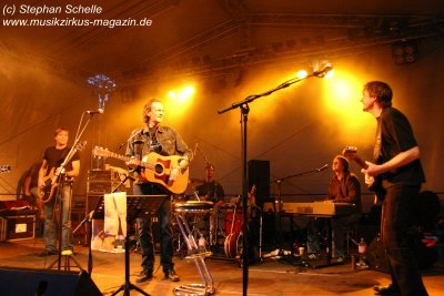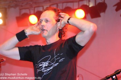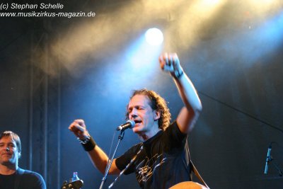 Dann betraten gegen ca. 21:30 Uhr Wolf Maahn und Band die Bühne um ihren gut zweistündigen Set zu spielen. Obwohl die Band am 18.10.2007 erst auf die Tour „Direkt ins Blut II – 25 Jahre Wolf Maahn live“ aufbricht (gestartet wird in Berlin und am 24.10.2007 machen sie Station in Wolf’s Heimatstadt Köln), hat sie im Sommer schon mal einige Open Air’s gebucht, wobei Arnsberg die erste Station war.