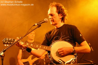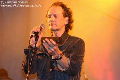 Wolf Maahn und seine Band, bestehend aus Matthias Krauss (Akustik- und E-Gitarre), Markus Wienstoer (Leadgitarre, Banjo, Geige), Jan Wienstoer (Schlagzeug), Volker Vaessen (Bass) und Oliver Jäger (Keyboards, Perkussion, Harmonika) waren an diesem Abend sehr gut aufgelegt. Das mag auch an der intimen Atmosphäre aufgrund des für Konzertverhältnisse recht überschaubaren Platzes gelegen haben, der allerdings sehr gut gefüllt war. So konnten die Musiker den direkten Kontakt zum Publikum halten.
