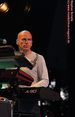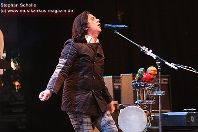 Pünktlich um 19.00 Uhr ging das Hallenlicht aus und die Bühne, die in blaues, teilweise flackerndes Licht getaucht war, wurde zunächst von Pete Trewavas, Ian Mosley, Mark Kelly und Steve Rothery betreten, die sofort mit einer druckvollen und rhythmischen Version von „The Invisible Man“ starteten. Als letzter kam Steve „h“ Hogarth auf die Bühne um den Startschuss für ein intensives, druckvolles und mitreißendes (aber wie ich finde, viel zu kurzes) Konzert zu geben. Schon bei diesem Opener (es ist bekanntlich eines der Lieblingsstücke der Band) agierte Steve Hogarth so ekstatisch und theatralisch, das er im Eifer des Gefechts sein Mikro aus dem Ständer haute. Die fünf Briten, allen voran „h“, waren von der ersten Sekunde an präsent, sie wussten das sie die Zeit (ihnen standen nur 60 Minuten zur Verfügung) nutzen mussten und das taten sie in beeindruckender Art und Weise.