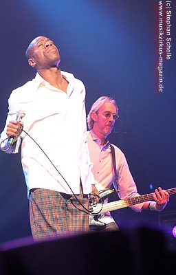 Bei „Another Cup Of Coffee” stieg zum ersten Mal, wenn auch noch etwas gebremst, die Stimmung im Saal, denn das Publikum sorgte das erste Mal mit rhythmischem Klatschen für Stimmung. Und bei den älteren Hits wurden Paul Carrack und Paul Young nicht vermisst, denn die beiden neuen hinterm Mikro waren perfekt aufeinander eingespielt und wechselten sich wie zum Beispiel in „Nobody Knows“, bei dem Roachford die Strophe und Tim den Refrain übernahm, sehr gut ab. Das klang für mich nicht nach einem Versuch die Originale zu imitieren, sondern hatte eine ganz eigene Qualität, die den Songs gut zu Gesicht stand.