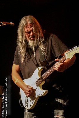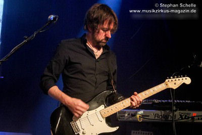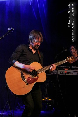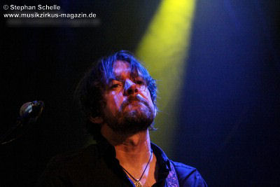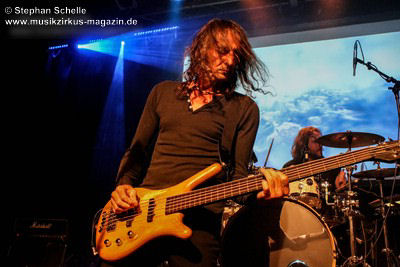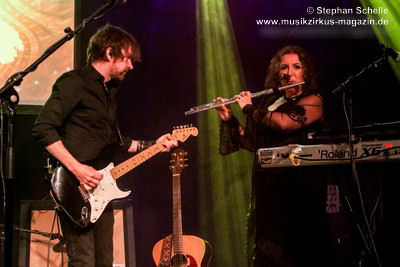 Danach ging es mit „Spirit Of Mankind“, einem nach vorne gehenden Song aus dem letzten Album „Graveyard Star“ weiter. Ein toller Song der sich im Ohr festsetzt. Mit dem Stück „The Spirit Of Autumn Past“ vom gleichnamigen 99’er Album ging es dann weit in die Vergangenheit, ins Jahr 1999, zurück. Angela Gordon griff in diesem atmosphärischen Song, einer Mischung aus Prog und Folk, erstmals an diesem Abend zur Querflöte. Danach schaltete die Band noch einen Gang zurück und spielte von ihrem Debütalbum „For All We Shared“ den Song „The Last Climb“. In dem Song trat dann auch Bryan’s Vorliebe für David Gilmour’s Gitarrenspiel zu Tage, in dem er ein sehr atmosphärisches Solo einbaute. Dem folgte dann das zarte „Gaze“.