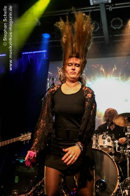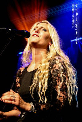 Das druckvolle „Tomorrow Dies“ war der perfekte Einstieg in den Gig, der eine Mischung aus powervollen und sehr ruhigen Stücken darstellte. Mit diesem Einstieg hatte die Band das Publikum gleich auf ihrer Seite. Allerdings machte sich zu diesem Zeitpunkt schon bemerkbar, dass für die Abmischung ein Platz direkt vor der Bühne nicht geeignet war, denn Olivia’s Gesang ging in dem fetten Sound der Band mehrfach komplett unter. Einige Reihen weiter war der Sound dagegen gut.