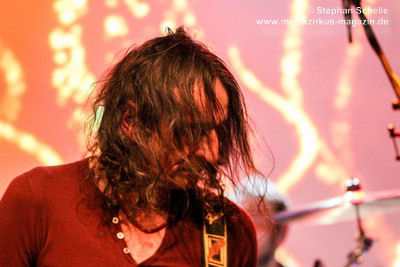 Gesangseinsatz ans Mikro trat, auf die Bühne. Dann startete die Band in