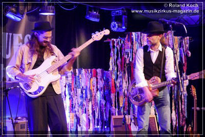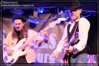 Blues-Mucke. Der dritte im Bunde ist Mitgründer Michi Lang am Bass, er