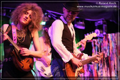 Fabian singt, Ina wechselt ständig von ihrer bonbonrosa Gitarre zur